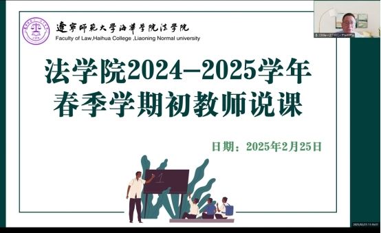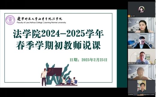 为促进教师专业成长,提升教学水平,确保新学期教学工作高质量开展,2025年2月25日,法学院采用线上的方式组织开展2024-2025学年春季学期初教师说课活动。此次活动聚焦新入职教师和承接新课的教师,为他们提供展示教学思路与方法的平台,同时通过交流和听评,凝聚集体智慧,共同探索教学的优化路径。
