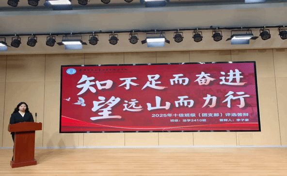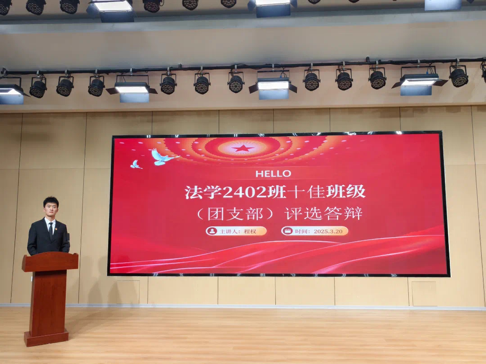 为夯实班级建设基础、强化班风学风引领,营造健康向上、团结奋进的班级风貌,beat365唯一官方网站法学院于3月20日在东校区组织开展十佳班级(团支部)评选答辩活动。法学院学生工作负责人董文泉及各年级辅导员出席并担任本次答辩评委。现场通过风采展示、成果汇报与评委提问,互学互鉴、创先争优,彰显班级风采。