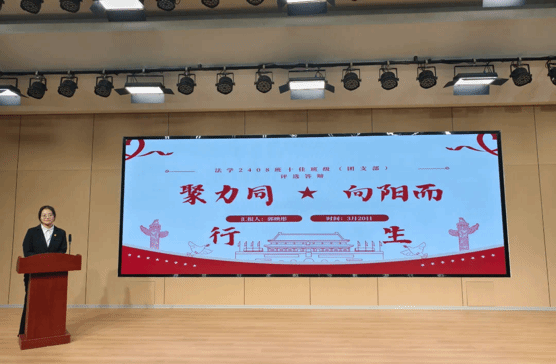 答辩结束,法学院学生工作负责人董文泉老师对本次答辩做出总结并提出指导意见,充分肯定了各班级以往特色鲜明的工作成果。针对各支部依次汇报的班级成果,特色鲜明,方针正确。并表示,要充分激发班集体“一群人带动一个班,一个班托举一群人”的教育功能,倡导班级将个人“成长愿景”汇聚成班级建设共同图景。在今后的班级建设中持续做好制度设计、凝聚力量、汇集特色,从建设好自己的班集体做起,求真学问、练真本领,争取在更大的集体熔炉中淬炼成钢,将个人“小我”融入集体“大我”,以青春“小我”书写强国“大我”,用奋斗擦亮青春底色。法学院学子要持续贯彻落实“厚德明法,博学济世”的院训精神,步履不停、挺膺担当,传承红色基因,传播科学理论,为实现中华民族伟大复兴贡献青春力量!