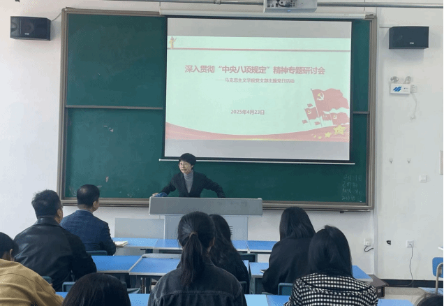 4月23日,马克思主义学院党支部在图书馆A-309教室召开深入贯彻中央八项规定精神学习教育专题研讨会。会议由马克思主义学院党支部书记刘彦清主持。全体师生党员参加了本次会议。