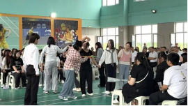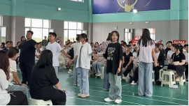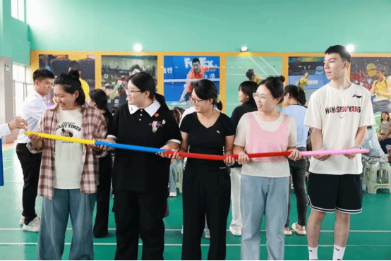 为强化团队协作与亲情联结,活动设置了丰富的家庭互动素质拓展环节。“抓手指”游戏中,同学们紧盯“月亮”关键词,在快速反应间考验专注与默契;“珠行万里”里,一根根管道接力传递小球,串联起协作与信任;“团结一心”活动中,手拉手的同学平稳传递“集体纽带”,用“不松手、不断档”诠释团队精神。欢笑与协作间,新生们不仅感受到集体的力量,更在亲子互动中拉近与家人的距离。