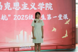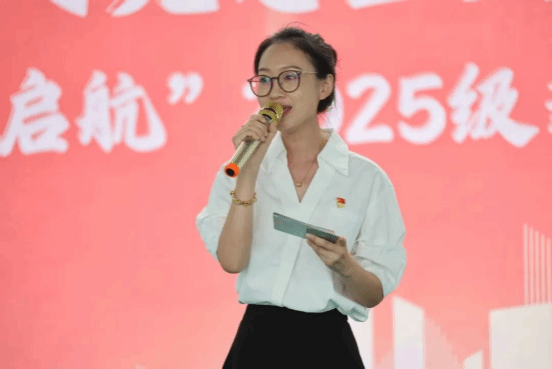 随后,朗诵《颂我华夏,扬我国魂》拉开思政教育的序幕。王子毓、冯禹淇两位同学以铿锵之音,从山河壮丽到文脉绵长,从薪火相传到星辰大海,带领现场师生感受华夏千年底蕴与时代脉搏,筑牢思政人的精神根基;赵子琪同学演唱的红歌《万疆》,则以磅礴旋律唱出盛世豪情,激发新生“以青春之我建设青春之中国”的赤子之心。