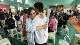 活动最动人的篇章,当属“成长契约·感恩同行”环节。在温情的音乐中,新生们手捧鲜花走向家长,凝视着父母眼中的关切与岁月留下的痕迹,紧握那双托举成长的温暖手掌,齐声说出“爸爸,妈妈,谢谢您,我爱您”,并送上深情拥抱。简单的话语与真挚的拥抱,将深藏心底的感恩化为具象的行动,让亲情在这一刻静静流淌,也让在场师生感受到马克思主义学院对学生情感培育与全面发展的重视。