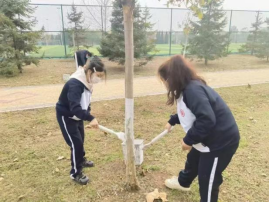 秋季是树木养护的关键时期,为有效提升校园树木抗寒防虫能力,保障校园生态景观协调,组织开展给树木刷白等养护工作,为道路两旁的树木穿上“冬日防护衣”。整齐划一的白色“防护层”不仅为校园增添了一道整洁美观的风景线,更构建起一道有效的生物防护屏障,有效降低了越冬病虫害滋生风险,帮助树木安全越冬。